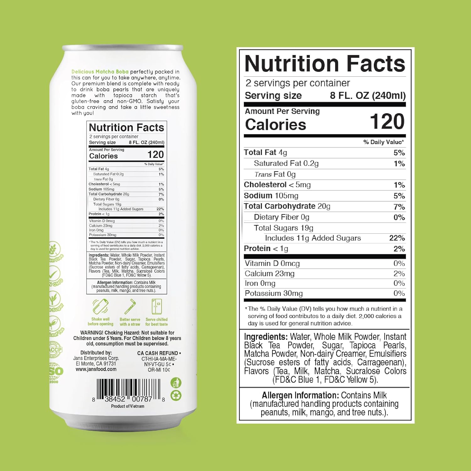 Jans Boba Milk Tea Matcha 500ml