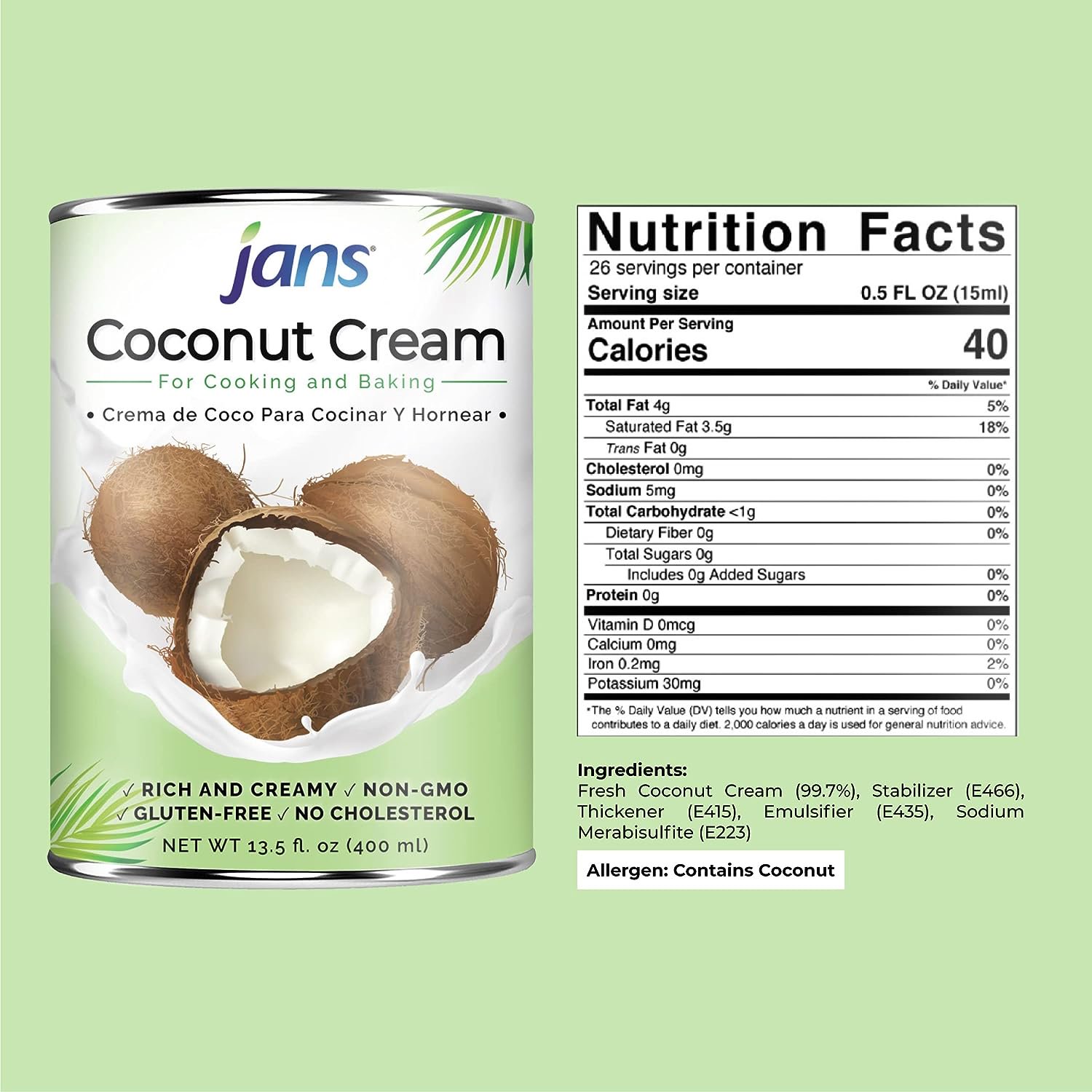 Jans Coconut Cream 400ml