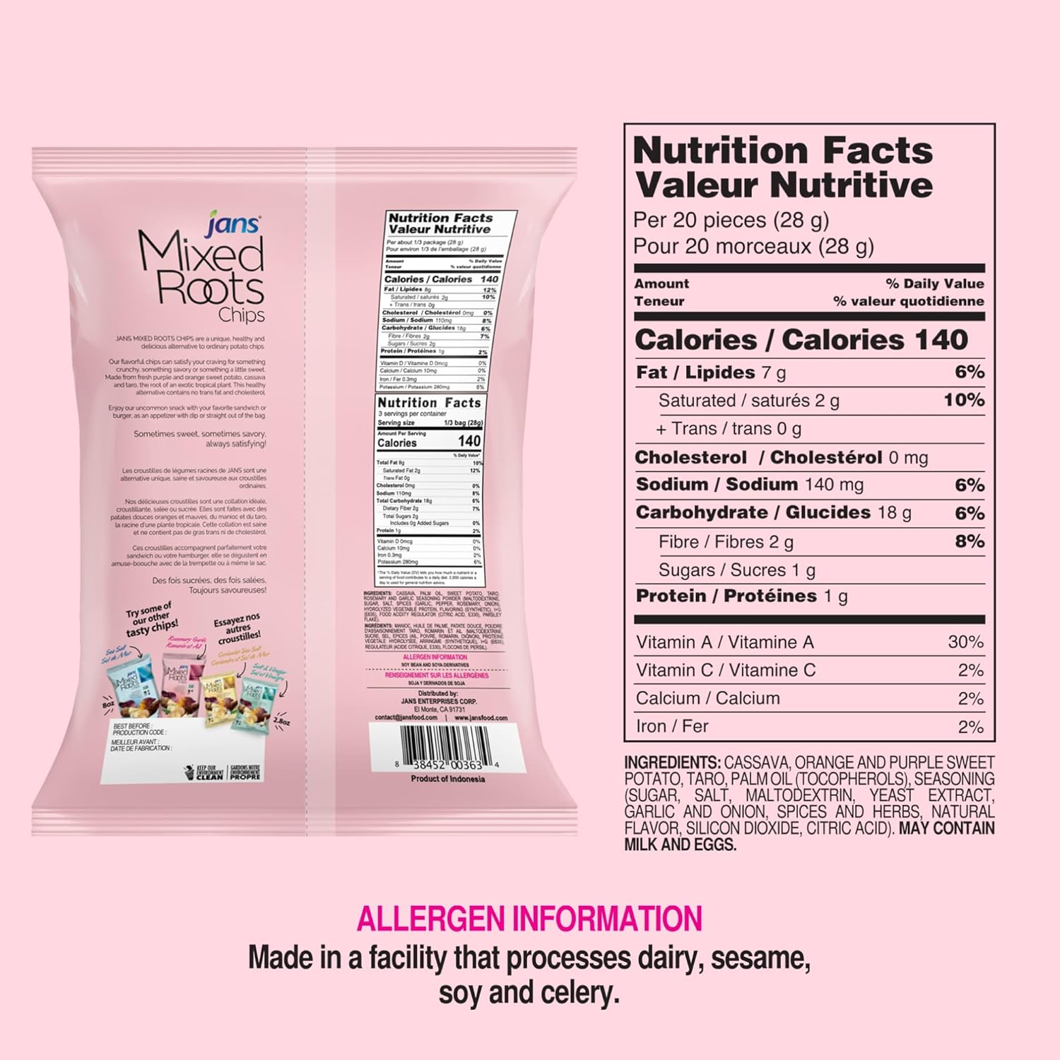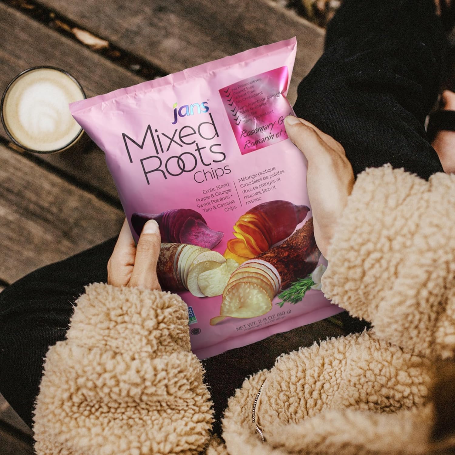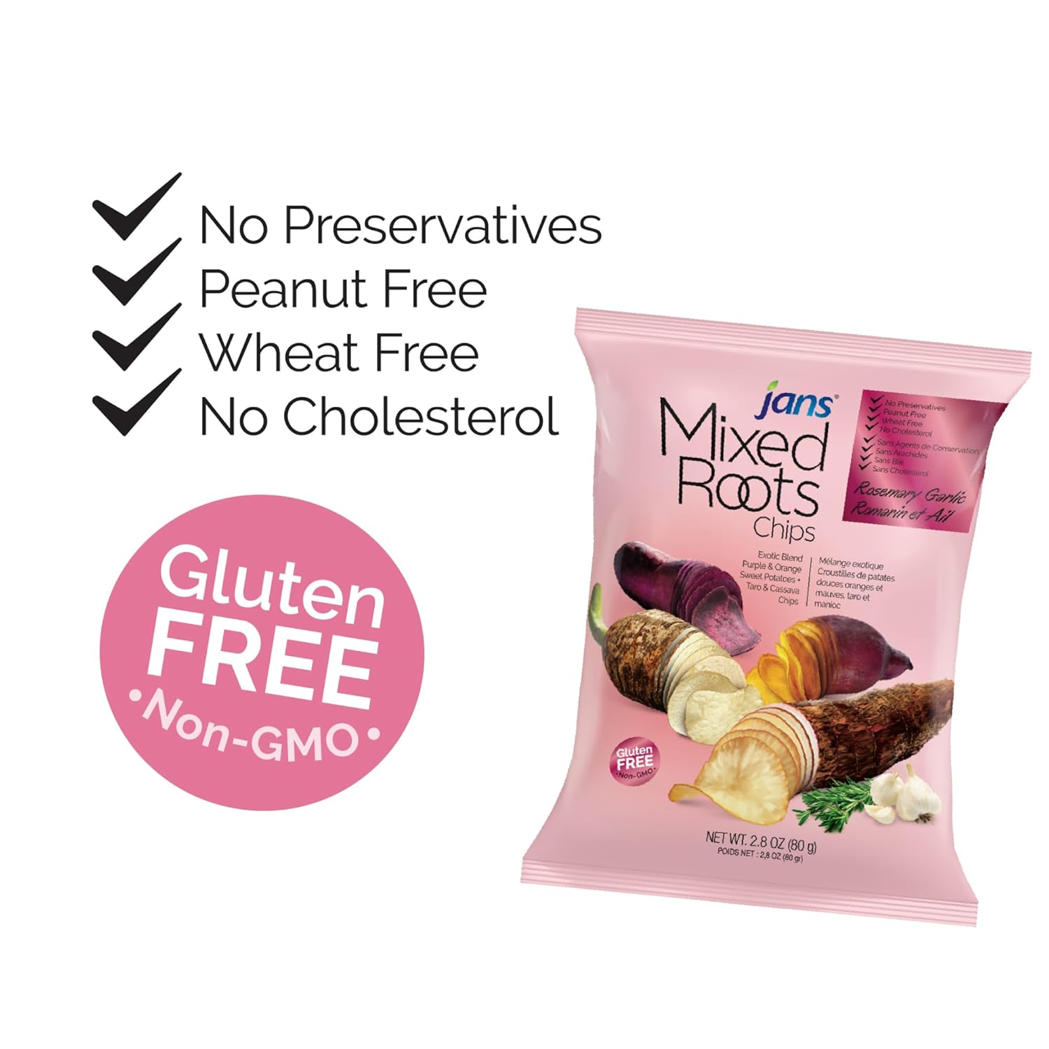 Jans Mixed Roots Chips Rosemary Garlic 80g