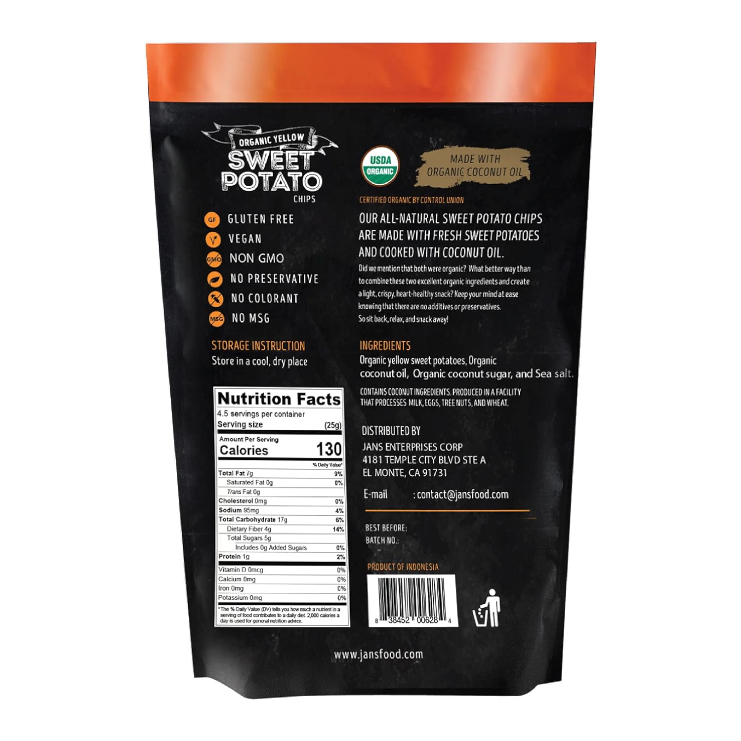 Jans Organic Yellow Sweet Potato Chips 113g